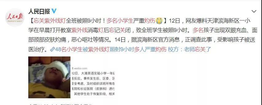 天津小學(xué)忘關(guān)紫外線消毒燈,多名小學(xué)生出事!