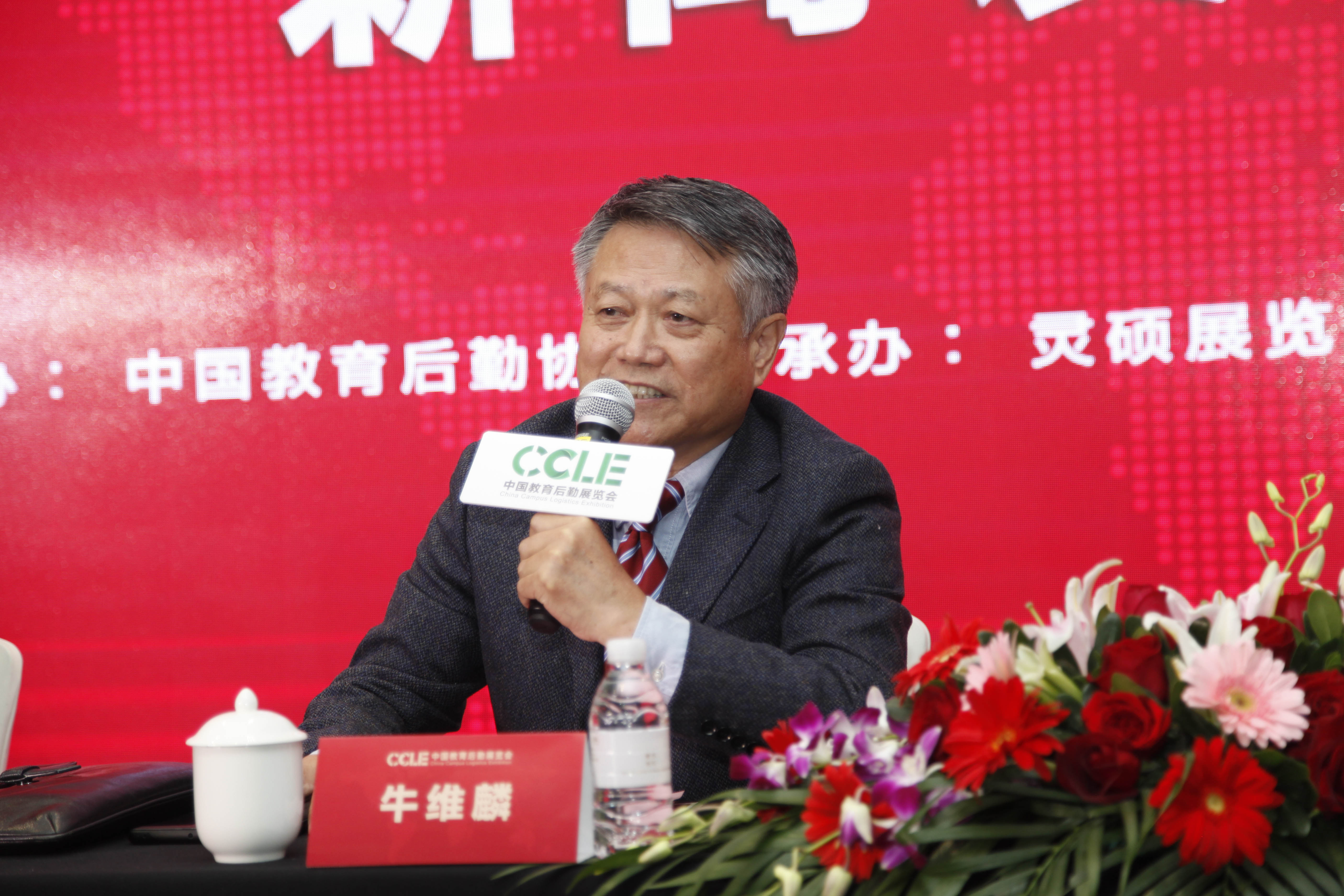 (中國教育后勤協(xié)會常務副會長兼秘書長牛維麟致辭)