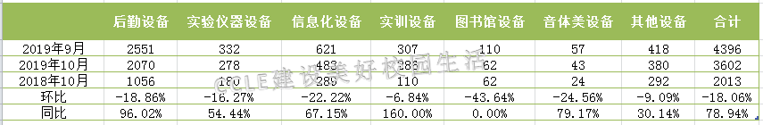 2019年10月份教育裝備行業(yè)招標(biāo)采購信息分類占比情況