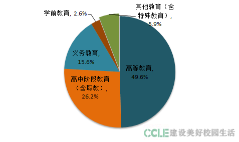 10月份招標(biāo)采購信息所屬領(lǐng)域統(tǒng)計(jì)情況如上圖所示:學(xué)前教育占比為2.6%;義務(wù)教育占比為15.6%;高中階段教育(含職教)占比為26.2%;高等教育占比為49.6%;其他教育(含特殊教育)占比為5.9%。