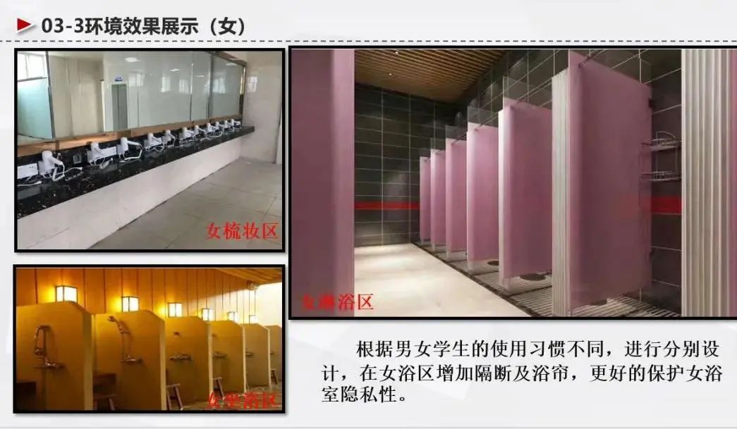 ·另外,學(xué)校對(duì)浴室也進(jìn)行了升級(jí)改造,洗浴位和相關(guān)配置增加,熱水淋浴和熱水龍頭均可插校園卡付費(fèi)使用,真正實(shí)現(xiàn)“一卡通”。