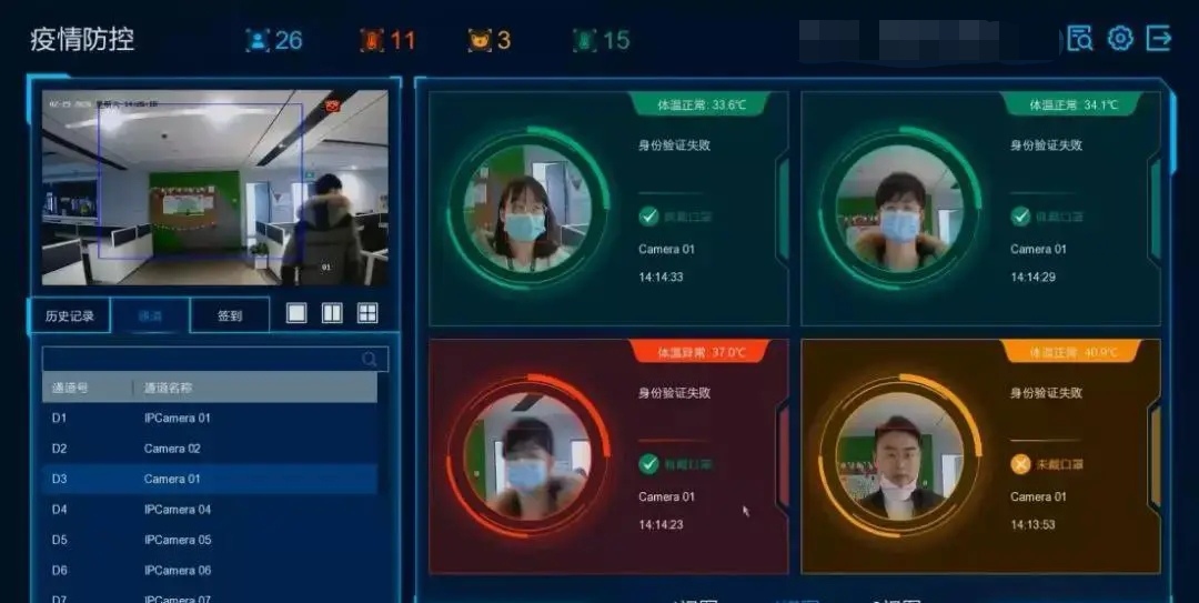 通過在河南工大圖書館、體育訓(xùn)練中心安裝人臉識別智慧門衛(wèi)系統(tǒng),師生刷臉無感進出大門,同時經(jīng)過人證比對識別人員身份信息,將陌生人及黑名單人員阻攔在門外;外來人員可通過訪客預(yù)約功能在線登記,授權(quán)成功后,刷臉通行;另外系統(tǒng)還具備測溫模式,可實時記錄通行人員體溫情況,實現(xiàn)高效精準的人員管控和體溫篩查,保證校園公共場所的安全秩序和防疫安全。