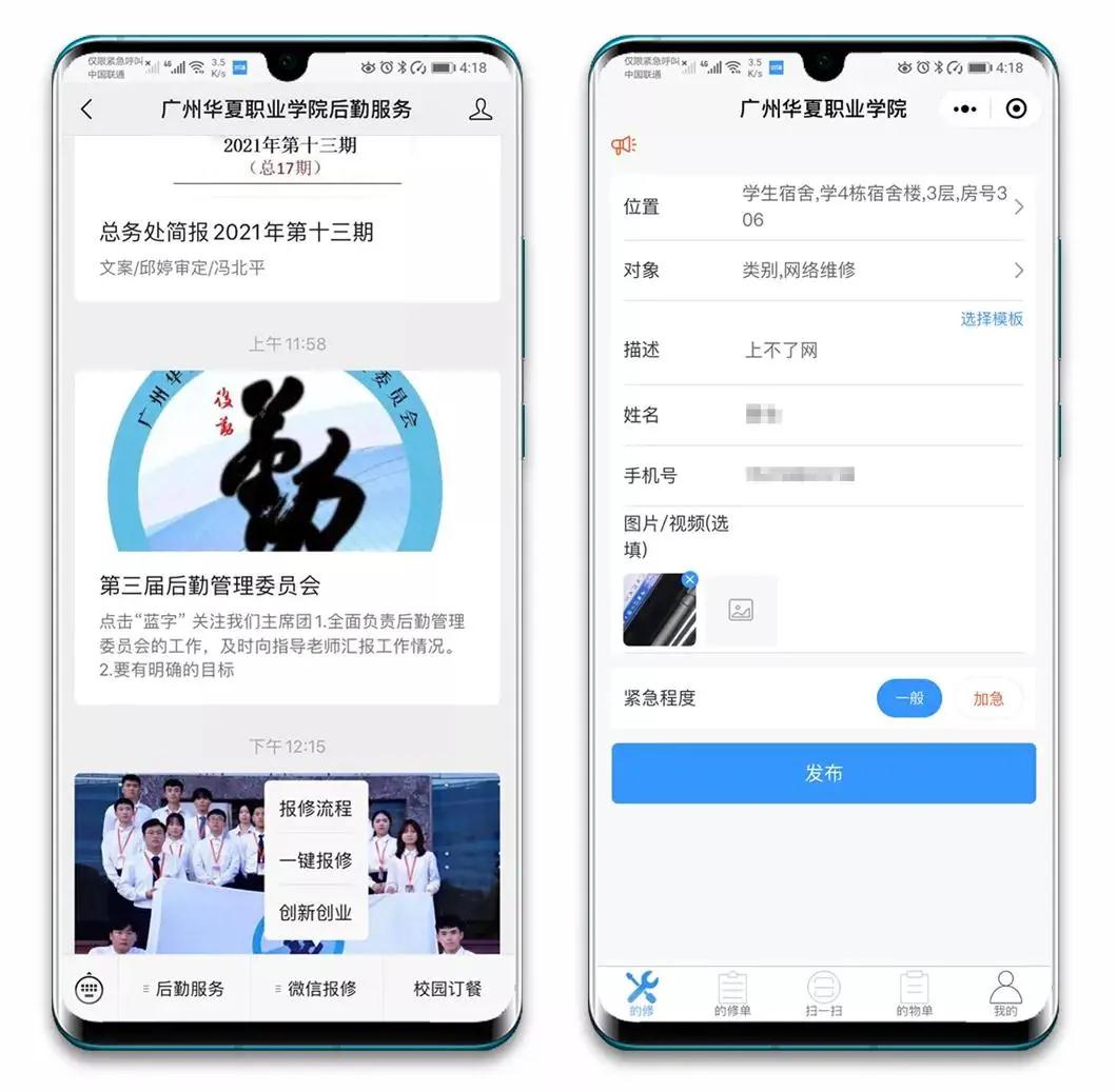 1.提供學(xué)校公眾號(hào)、二維碼、企業(yè)微信、釘釘、H5網(wǎng)頁(yè)等多種方式在線報(bào)修,并支持圖片、語(yǔ)音或視頻加以說(shuō)明,維修后服務(wù)評(píng)價(jià),實(shí)現(xiàn)足不出戶便能在線精準(zhǔn)報(bào)修;
