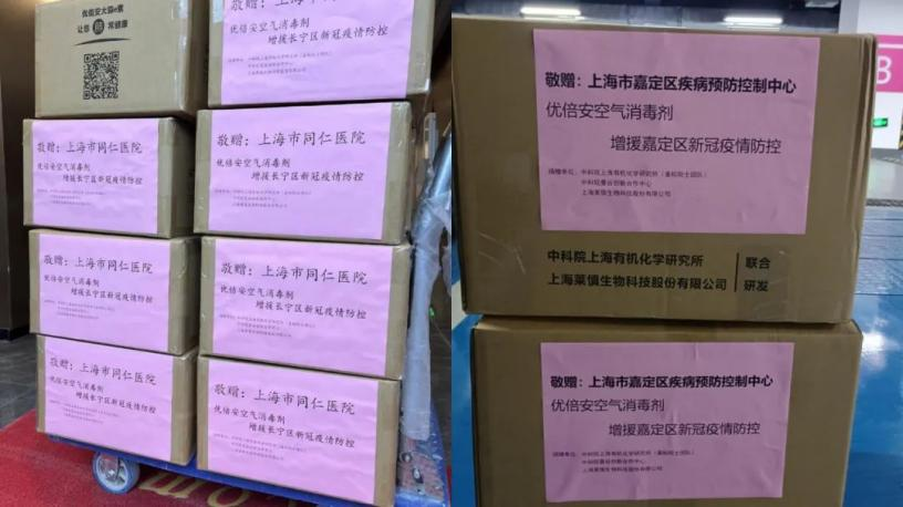 萊慎生物捐贈上海市嘉定區(qū)疾控中心10箱優(yōu)倍安空氣消毒劑以及配套的空氣消毒器,支援嘉定區(qū)新冠疫情防控工作,保障嘉定疾控工作人員抗疫期間集中辦公環(huán)境的安全。