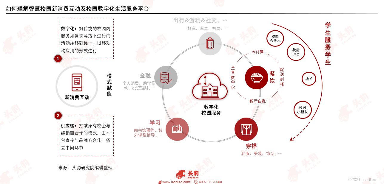 何謂智慧校園新消費(fèi)互動(dòng)及校園數(shù)字化生活服務(wù)平臺(tái)即以校園為主場(chǎng)、以學(xué)生為服務(wù)對(duì)象,通過新消費(fèi)互動(dòng)模式對(duì)傳統(tǒng)的校園服務(wù)進(jìn)行數(shù)字化、智能化升級(jí),向大學(xué)生提供各類生活服務(wù)的智慧平臺(tái)。