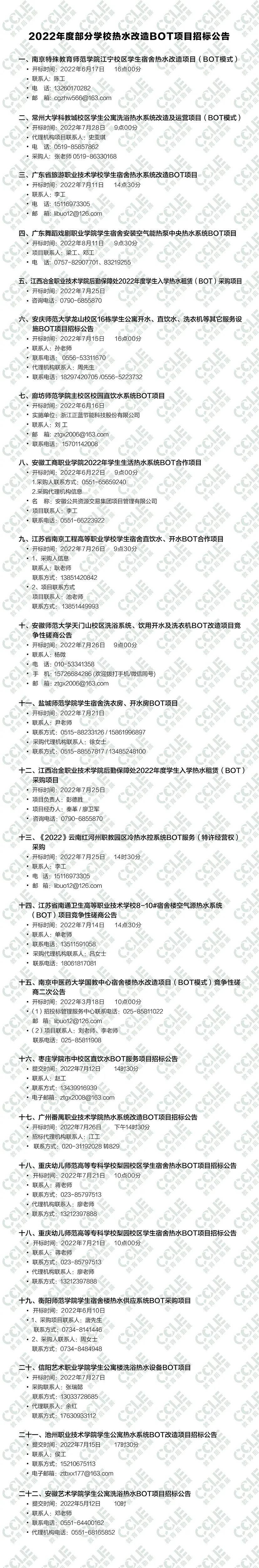 后勤小編通過各種渠道搜集了近幾個月各地區(qū)學校熱水工程改造項目招標公告(如下圖)