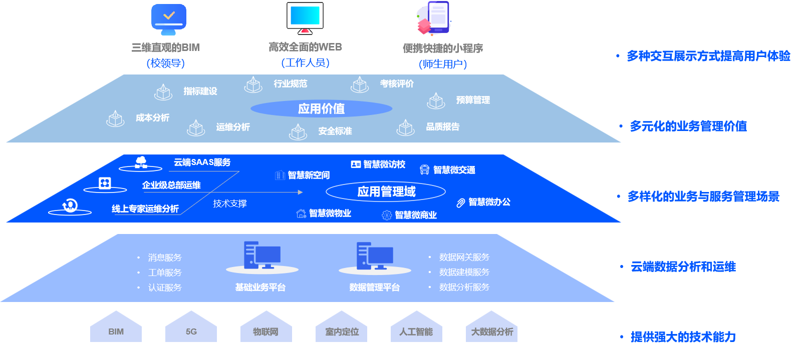 平臺依托最新OS桌面設計架構,實現(xiàn)校園綜合服務內容標準化、管理精細化、手段數字化、設施現(xiàn)代化和隊伍專業(yè)化,讓服務管理更清晰、專業(yè),過程更輕松、高效。同時,平臺依托業(yè)務融合引擎和大數據效能治理能力,實現(xiàn)部門之間的智慧連接、部門與服務承包商的連接,打造智慧校園管理內外雙循環(huán)生態(tài)。平臺已經為香港科技大學(廣州)、華南理工大學國際校區(qū)等國內頭部院校提供全域服務,多次接受教育部部委領導指導、考察。