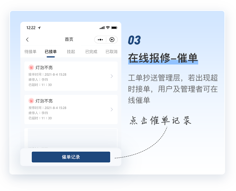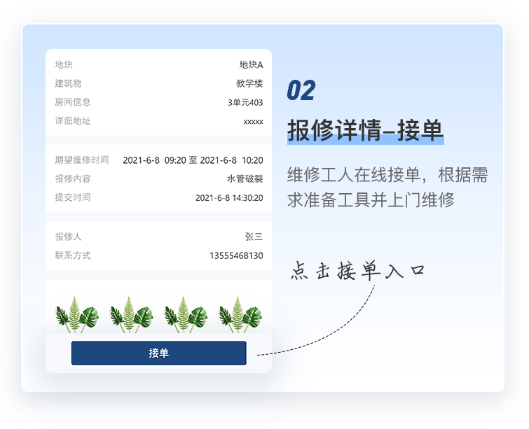 學校報修擺脫粗放式管理,對工作人員的響應速度、維修頻次、服務質量等進行全方位自動化在線跟蹤,工作成果可視化,實現(xiàn)精細化團隊管理,有效控制成本,提升用戶滿意度。