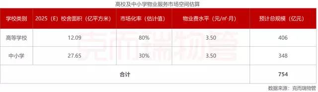 基于上述分析,估計2025年我國僅高等教育及中小學(xué)物業(yè)服務(wù)市場規(guī)模至少可達(dá)754億元。由于當(dāng)前我國高校后勤社會化水平較低,全國僅有約36%的學(xué)校真正實現(xiàn)后勤社會化。未來,隨著學(xué)校后勤社會化進(jìn)程的加速,越來越多的學(xué)校物業(yè)服務(wù)將面向社會公開招標(biāo),學(xué)校物管潛在的市場空間巨大,千億規(guī)模指日可待。