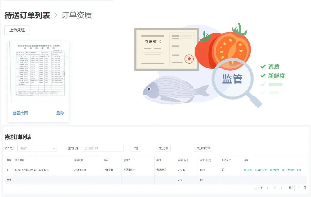 1、食品追溯:即時上傳訂單的農(nóng)殘檢測報告、肉類溯源憑證,確保訂單食材安全可溯源。