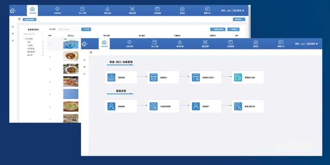 1、支持多食堂分級管理,每個食堂具有獨立管理權限,能夠管理用戶、子食堂、餐別、菜品等信息。