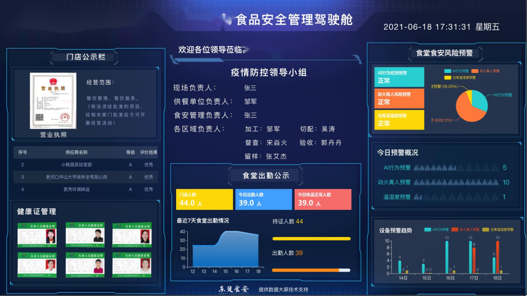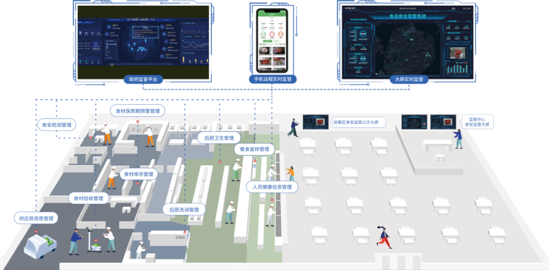 通過人臉識別、行為識別、火災識別、溫濕度識別等對后廚安全隱患進行實時監(jiān)控,數(shù)據(jù)預警和風險消除。
