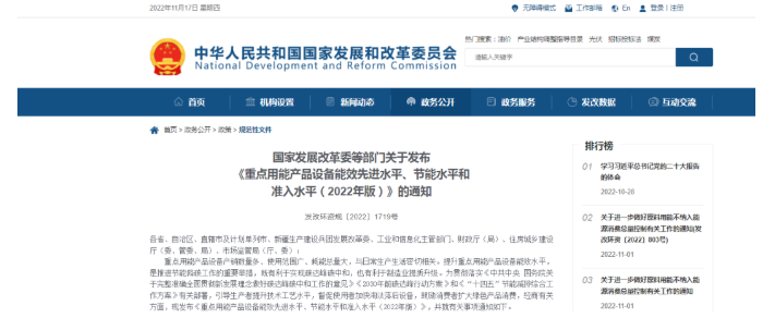 近日,國(guó)家發(fā)改委等部門發(fā)布《關(guān)于發(fā)布〈重點(diǎn)用能產(chǎn)品設(shè)備能效先進(jìn)水平、節(jié)能水平和準(zhǔn)入水平(2022年版)〉的通知,其中低環(huán)境溫度空氣源熱泵(冷水)機(jī)組、熱泵熱水機(jī)(器)、風(fēng)冷式熱泵入選。提升重點(diǎn)用能產(chǎn)品設(shè)備能效水平,是推進(jìn)節(jié)能降碳工作的重要舉措,有利于實(shí)現(xiàn)碳達(dá)峰碳中和。