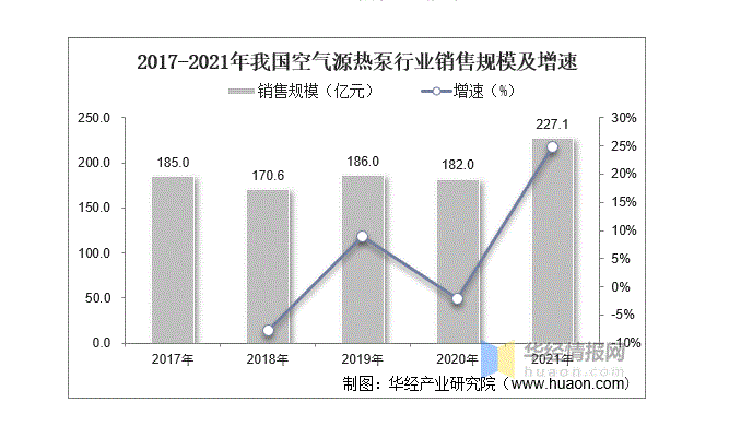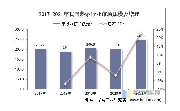 ▲2017-2021年中國(guó)熱泵行業(yè)市場(chǎng)規(guī)模及增速