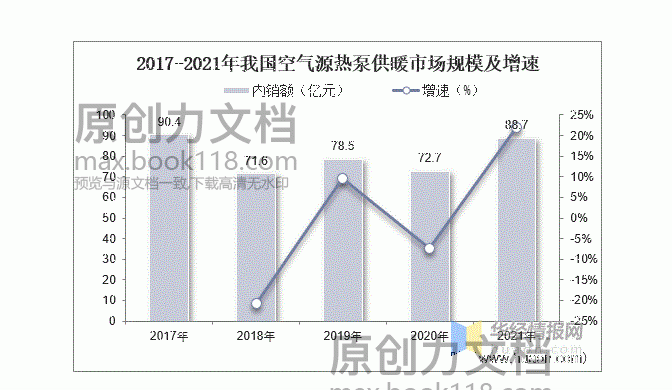 ▲2017-2021年中國(guó)空氣源熱泵供暖市場(chǎng)規(guī)模及增速