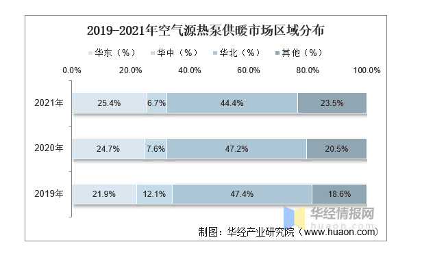 ▲2019-2021年空氣源熱泵供暖市場(chǎng)區(qū)域分布