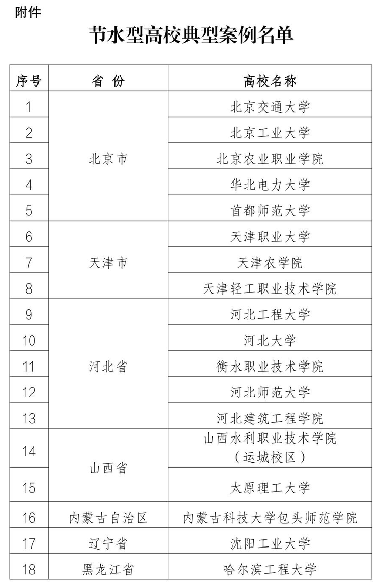 水利部辦公廳 教育部辦公廳 國(guó)家機(jī)關(guān)事務(wù)管理局辦公室關(guān)于公布節(jié)水型高校典型案例名單的通知