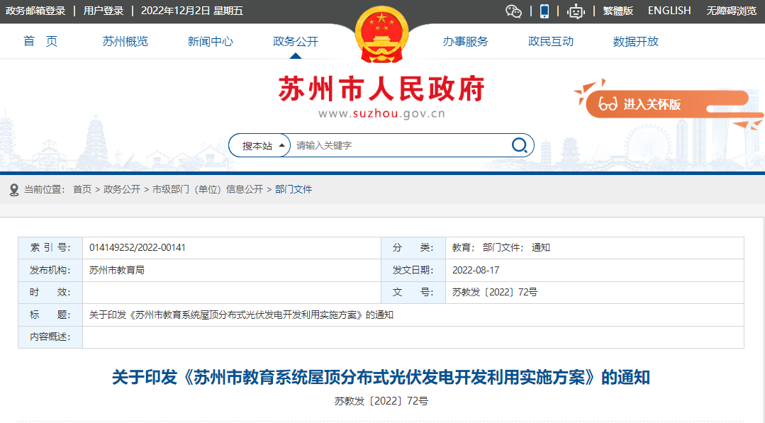 ▲蘇州《蘇州市教育系統(tǒng)屋頂分布式光伏發(fā)電開發(fā)利用實(shí)施方案》