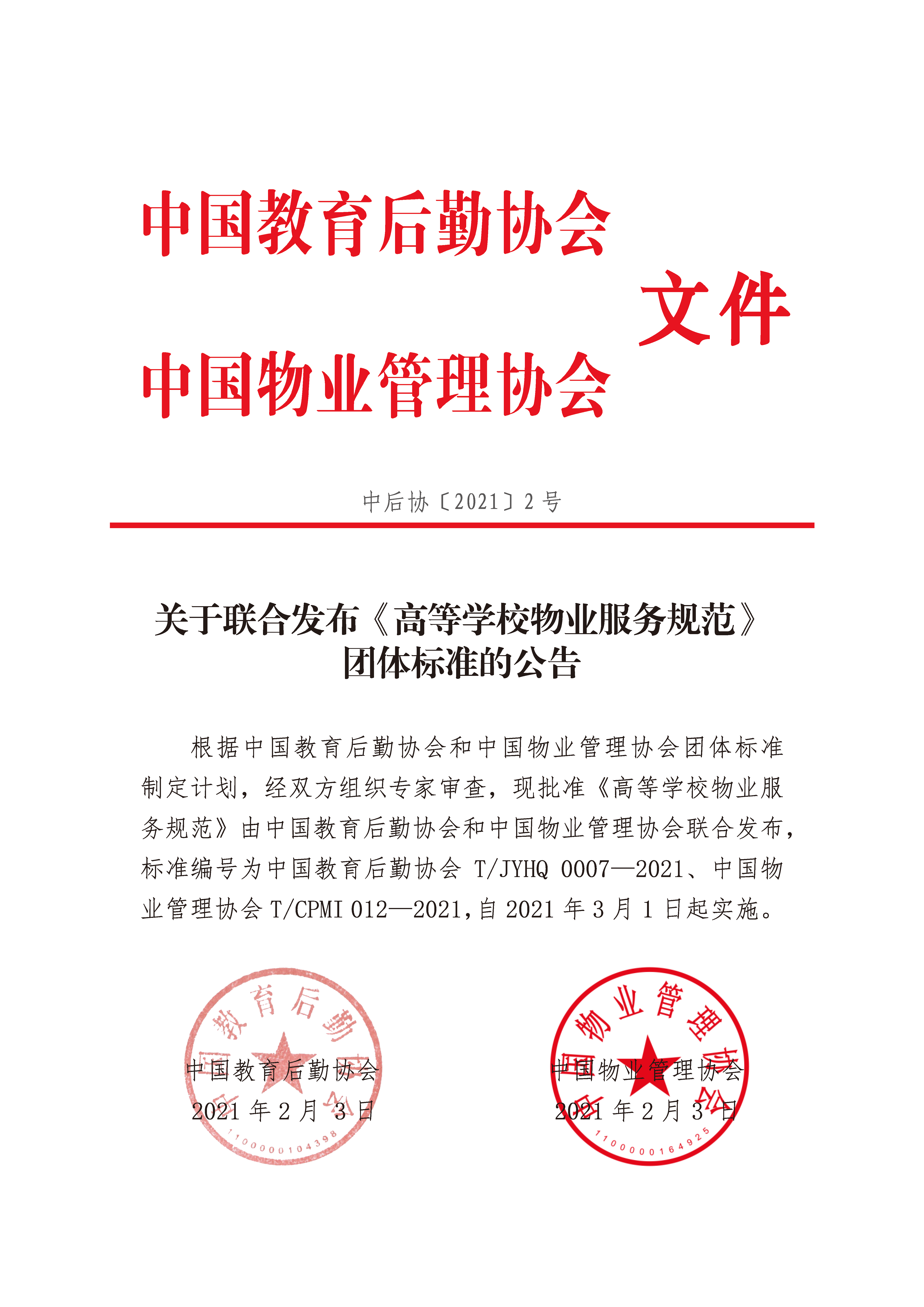 《高等學(xué)校物業(yè)服務(wù)規(guī)范》團(tuán)體標(biāo)準(zhǔn) 《高等學(xué)校后勤組織文化建設(shè)評(píng)價(jià)標(biāo)準(zhǔn)》團(tuán)體標(biāo)準(zhǔn)
