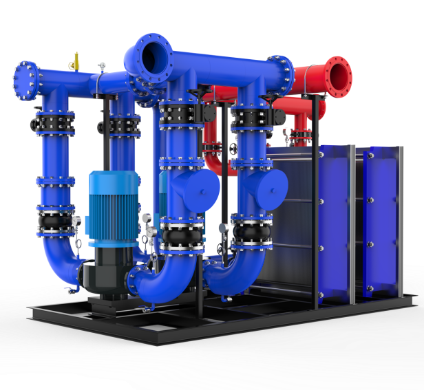 由板式換熱器、二次循環(huán)泵、電動控制閥、智能控制 柜、管道、閥門、儀表、底座等構成。