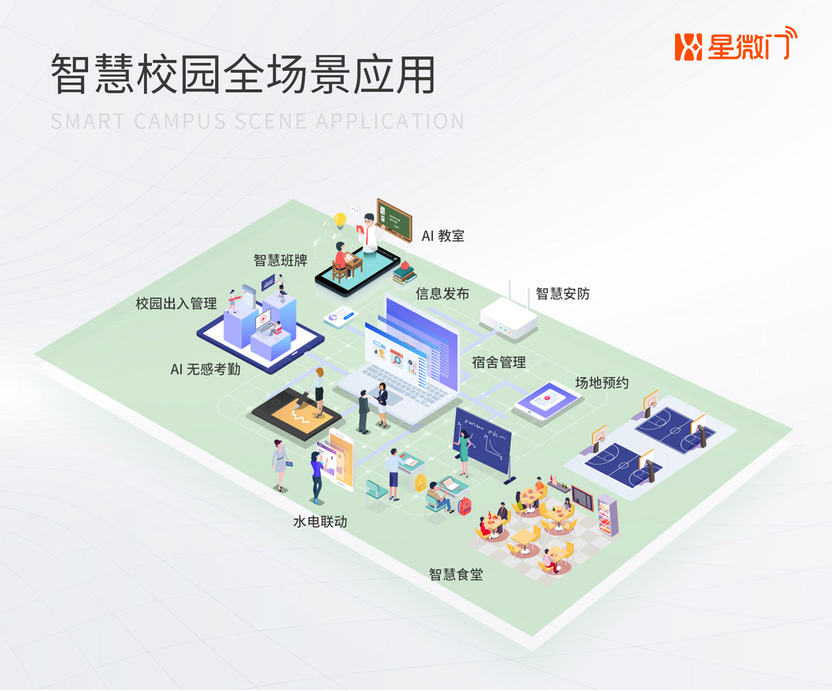 在國家教育數(shù)字化和校園新基建政策指導(dǎo)下,星微門以AI技術(shù)驅(qū)動(dòng)“數(shù)字校園”向“智慧校園”轉(zhuǎn)型,提供校園出入管理、無感考勤、AI教室、智慧班牌、信息發(fā)布、場地預(yù)約、智慧食堂、宿舍管理、水電聯(lián)控、智慧安防等應(yīng)用。