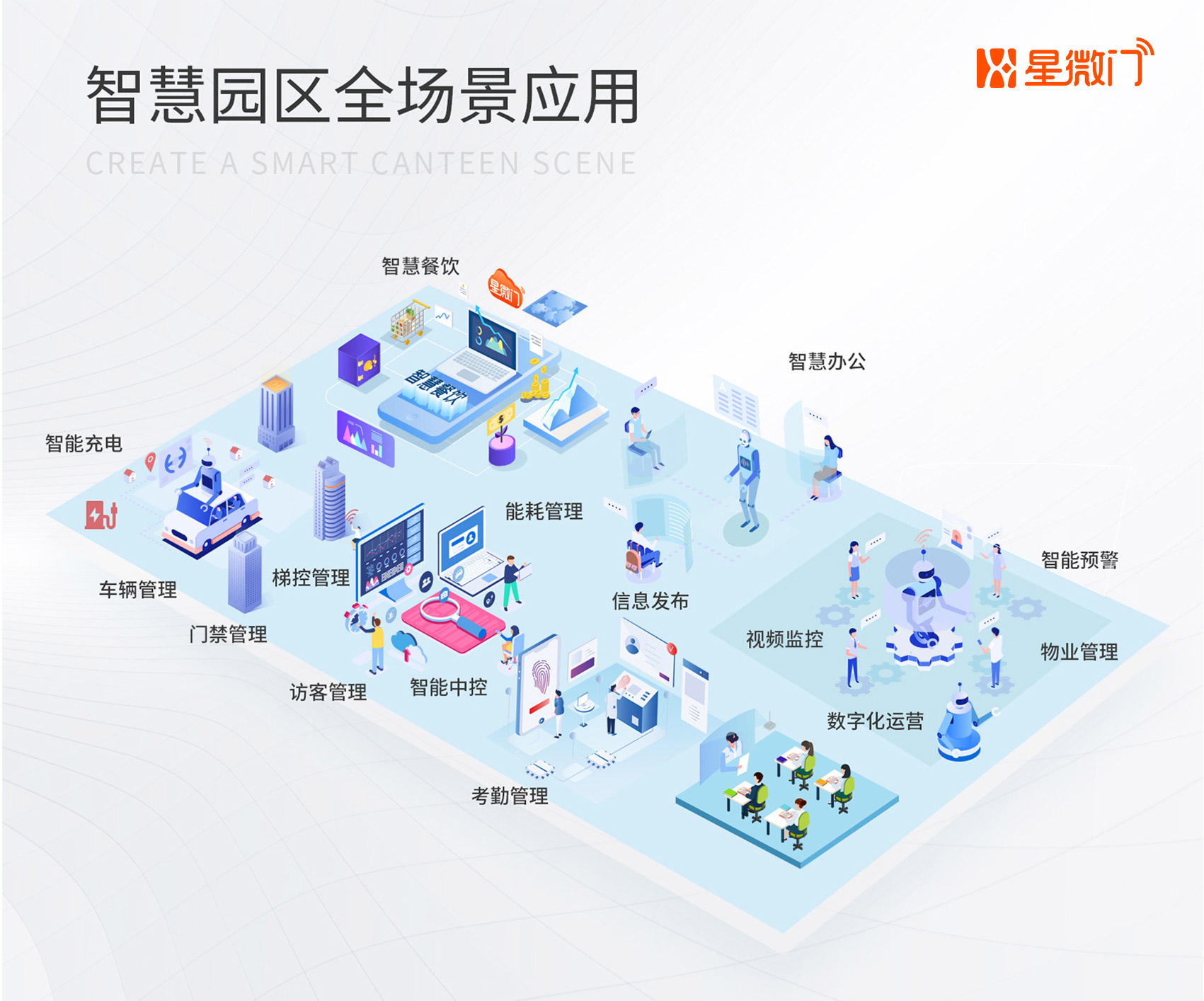 星微門智慧園區(qū)綜合管理平臺(tái),提供人員車輛出入管理、智能充電、智能中控、智慧辦公、智慧食堂、物業(yè)管理、能耗管理、信息發(fā)布、視頻監(jiān)控、智能預(yù)警、數(shù)字化運(yùn)營等場景應(yīng)用。
