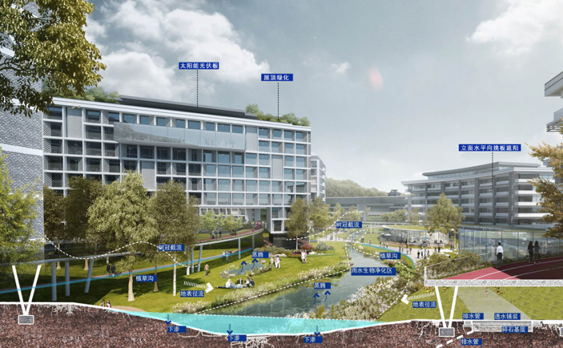 今年9月即將投入使用的南京大學(xué)蘇州校區(qū),總建筑面積約100萬平方米,綠色建筑項(xiàng)目面積占比達(dá)100%。校區(qū)還充分利用山林、水系和風(fēng)向,在建筑布局及單體設(shè)計(jì)中,通過采取下沉庭院、風(fēng)廊、綠廊、外立面遮陽、屋頂綠化等節(jié)能措施,打造具有完善生態(tài)系統(tǒng)、宜居宜學(xué)的生態(tài)校園。