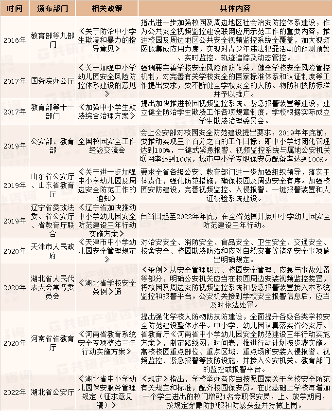 近年來,校園安全問題頻發(fā),同時(shí)也引發(fā)社會(huì)各界廣泛關(guān)注。國(guó)家與地方政府陸續(xù)發(fā)布了多想加強(qiáng)校園安全管理的政策、法規(guī)與標(biāo)準(zhǔn)規(guī)范,提出要不斷完善學(xué)校的“人防”“物防”“技防”建設(shè),構(gòu)建平安校園。