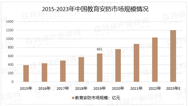 近年來,校園安防行業(yè)市場(chǎng)規(guī)模穩(wěn)定擴(kuò)大,據(jù)相關(guān)數(shù)據(jù)統(tǒng)計(jì),2015年我國(guó)校園安防市場(chǎng)規(guī)模為389億元,到2019年已經(jīng)增長(zhǎng)至661億元,預(yù)計(jì)在2023年有望達(dá)到1200億元左右。