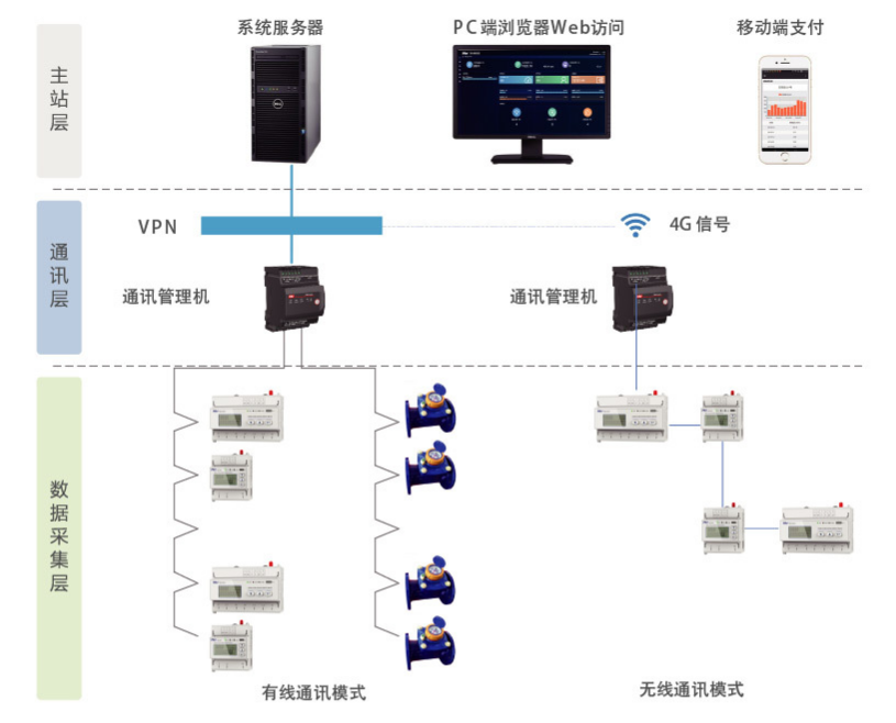 綜合在線計(jì)量收費(fèi)系統(tǒng)是基于B/S架構(gòu),可以實(shí)現(xiàn)遠(yuǎn)程抄表、預(yù)收費(fèi)管理、用電安全監(jiān)控為一體的綜合水電管理系統(tǒng)。系統(tǒng)支持多種便捷支付方式(包括現(xiàn)金、微信、支付寶、網(wǎng)銀及校園一卡通等)。預(yù)付費(fèi)采用標(biāo)準(zhǔn)協(xié)議加密,在保證資金安全的同時(shí),可以輕松地實(shí)現(xiàn)線上購(gòu)電購(gòu)水,系統(tǒng)支持完整的數(shù)據(jù)記錄、數(shù)據(jù)查詢、異常告警、欠費(fèi)拉閘等功能,支持定制接入第三方表計(jì)實(shí)現(xiàn)計(jì)量、收費(fèi),可和能管系統(tǒng)進(jìn)行模塊化結(jié)合,同步共享數(shù)據(jù)。