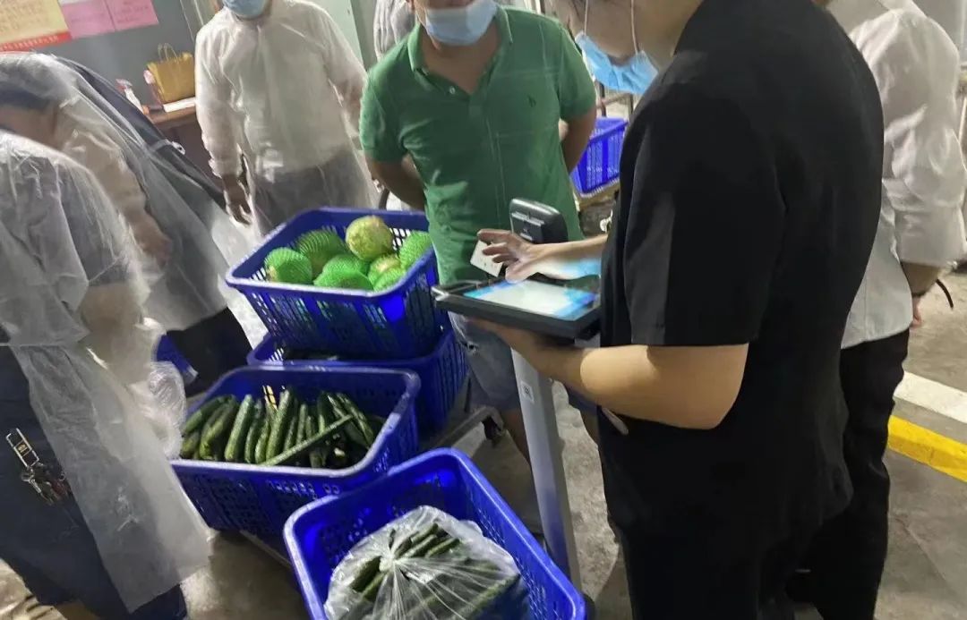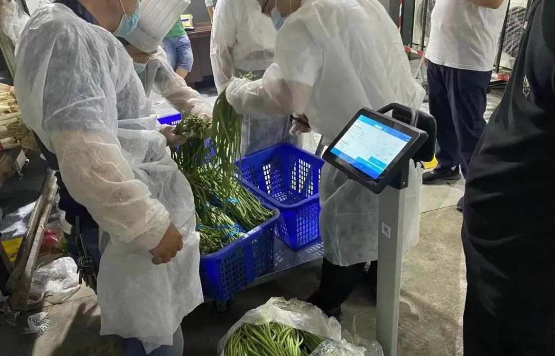 第二天早上,驗收部門會按照單據(jù),對供應商送達的食材進行驗收和入庫作業(yè)。驗收按照開袋、入筐、核驗品質(zhì)、拍照、計量、保存等規(guī)范的作業(yè)流程和動作,將數(shù)據(jù)生成并上傳到云服務器,這樣,完成一個單品食材的驗收,實現(xiàn)品名、重量、照片、時間四位一體的綁定。