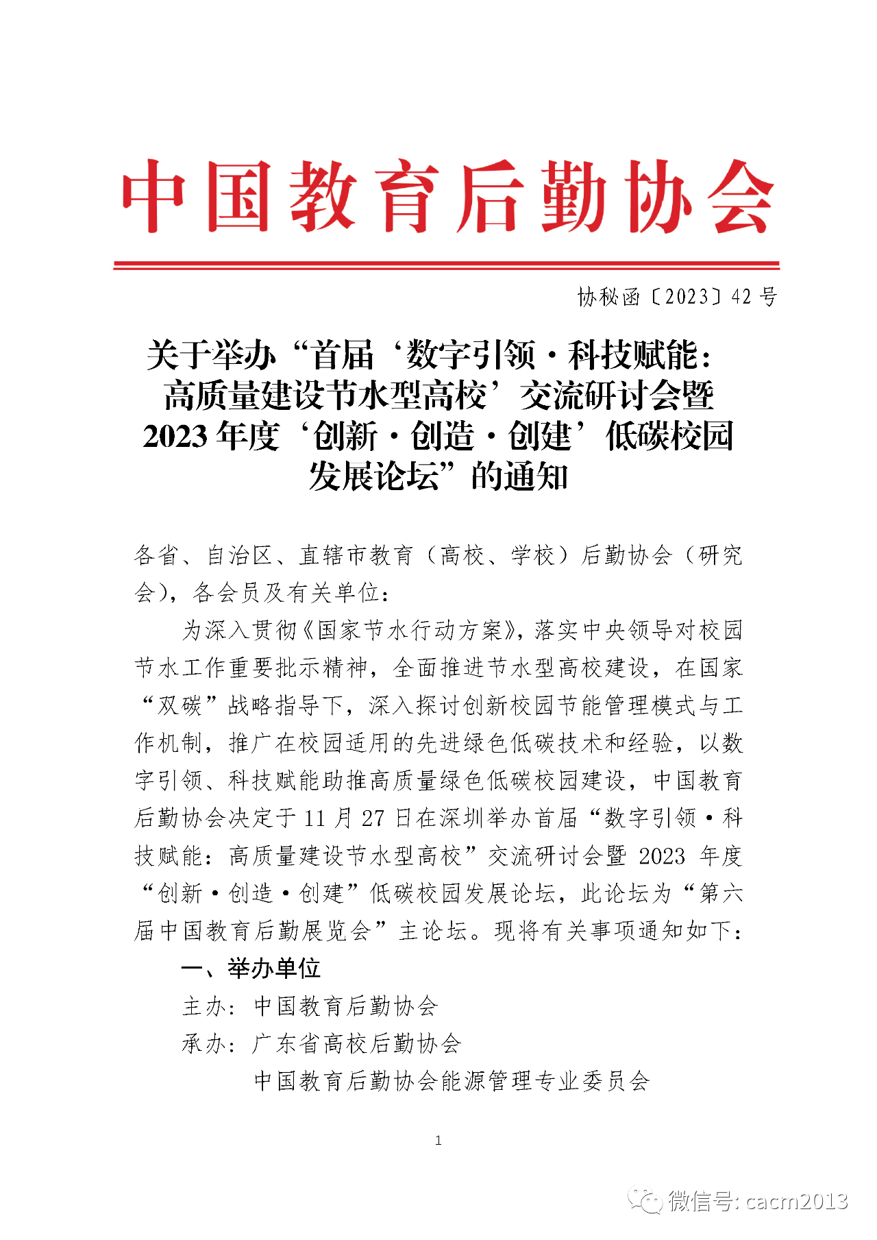 關(guān)于舉辦“首屆‘數(shù)字引領(lǐng)·科技賦能:高質(zhì)量建設(shè)節(jié)水型高校’交流研討會暨2023年度‘創(chuàng)新·創(chuàng)造·創(chuàng)建’低碳校園發(fā)展論壇”的通知