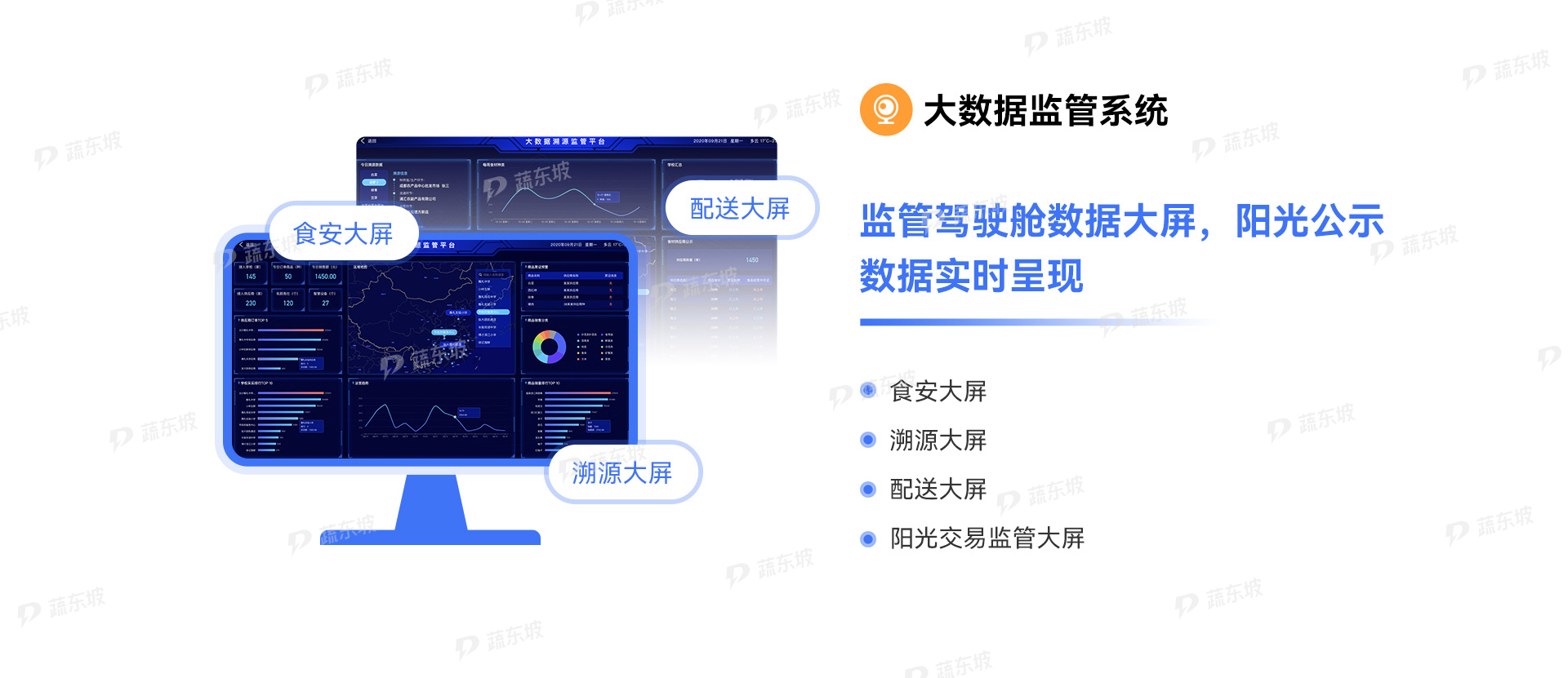 大數(shù)據(jù)監(jiān)管系統(tǒng)是核心中樞,協(xié)助教體局、市場監(jiān)督管理局等監(jiān)管部門全鏈條監(jiān)管食材采購,實現(xiàn)數(shù)據(jù)透明化。
