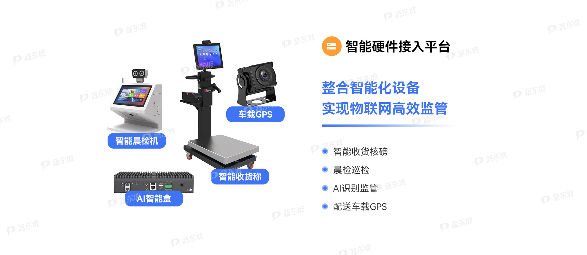 智能硬件接入平臺是食安與供應(yīng)鏈管理的“神經(jīng)末梢”。整合晨檢巡檢、AI識別監(jiān)管、配送車載GPS等智能化設(shè)備,實現(xiàn)物聯(lián)網(wǎng)高效監(jiān)管。
