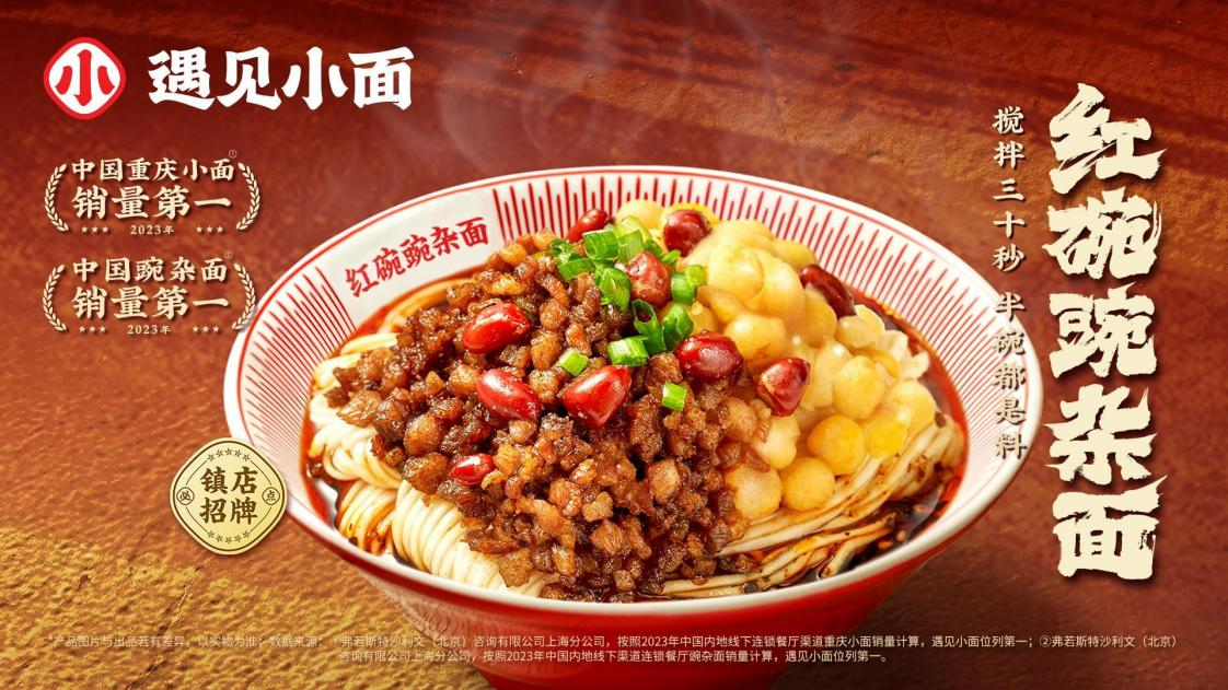 據沙利文權威認證:重慶小面、紅碗豌雜面、金碗酸辣粉均榮膺2023年“中國銷量第一”的市場地位認定。