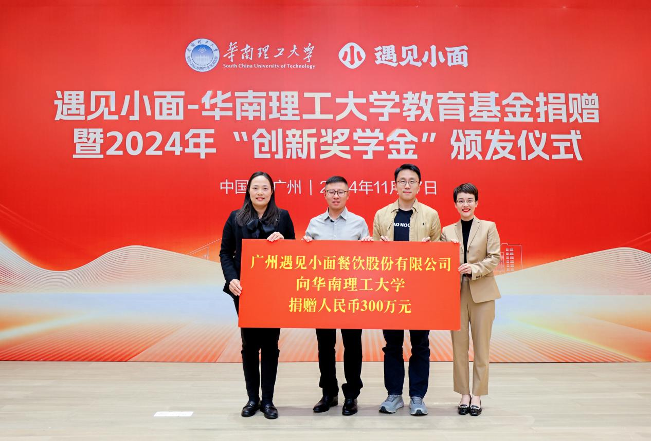 遇見小面向華南理工大學教育基金捐贈300萬“創(chuàng)新獎學金”