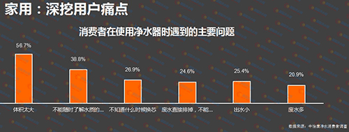 消費(fèi)不斷升級(jí),用戶(hù)對(duì)產(chǎn)品的新能、外觀、服務(wù)都是在不斷提升,這也是企業(yè)不斷開(kāi)發(fā)產(chǎn)品,不斷推動(dòng)產(chǎn)品發(fā)展的原動(dòng)力。根據(jù)中怡康的調(diào)研結(jié)果,用戶(hù)對(duì)產(chǎn)品的吐槽點(diǎn)或者痛點(diǎn)主要集中在體積太大,不能隨時(shí)了解水質(zhì),不能監(jiān)控到換芯還有出水量等問(wèn)題,這些痛點(diǎn)都在不斷推動(dòng)企業(yè)加速升級(jí)產(chǎn)品。從近幾年企業(yè)新品開(kāi)發(fā)的方向來(lái)看,確實(shí)得到了很多改觀。比如節(jié)省空間的問(wèn)題。中國(guó)的廚房與西方相比是相對(duì)比較小的,60%——80%的廚房面積都在5到8平米以下,因此櫥柜也很小。很多消費(fèi)者購(gòu)買(mǎi)完產(chǎn)品安裝以后發(fā)現(xiàn),櫥柜空間不夠大,只能選擇將產(chǎn)品放在臺(tái)上或者掛在墻上,影響美觀。目前已經(jīng)有一些主流品牌針對(duì)用戶(hù)的痛點(diǎn)開(kāi)發(fā)了一些體積比較小的產(chǎn)品,這些產(chǎn)品投放到市場(chǎng)上也獲得了很好的銷(xiāo)售結(jié)果。已經(jīng)占到市場(chǎng)的10%—12%銷(xiāo)售額。另外一個(gè)就是靜音降噪。像行業(yè)中的AO·史密斯、安吉爾、3M等也開(kāi)發(fā)了一些高端的產(chǎn)品,這些產(chǎn)品的噪音可以設(shè)計(jì)在40分貝。從現(xiàn)在的消費(fèi)來(lái)看,這種產(chǎn)品占到市場(chǎng)的6%左右,雖然占比較小,但這將是未來(lái)的發(fā)展趨勢(shì)。還有就是智能APP等,從凈水行業(yè)來(lái)講,通過(guò)搭載智能APP可以實(shí)現(xiàn)遠(yuǎn)程操控,包括檢測(cè)水質(zhì)等,現(xiàn)在這種智能產(chǎn)品在市場(chǎng)的比重大概在9%,也是一個(gè)很大的趨勢(shì)。
