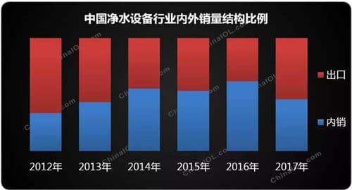 2017年國(guó)內(nèi)凈水行業(yè)龍頭企業(yè)基本確定,但市場(chǎng)仍在洗牌,部分中游企業(yè)反應(yīng)2017年未達(dá)預(yù)期。隨著市場(chǎng)基數(shù)加大,內(nèi)銷市場(chǎng)增速略有減緩,增長(zhǎng)速度收窄,但總體增勢(shì)繼續(xù)維持,海外市場(chǎng)表現(xiàn)良好。