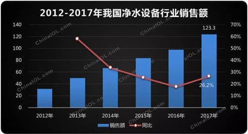 產(chǎn)業(yè)在線數(shù)據(jù)顯示:2017年家用凈水設(shè)備行業(yè)總生產(chǎn)量同比增長(zhǎng)11.9%,總銷量同比增長(zhǎng)13.3%。值得關(guān)注的是,2017年銷售額的增長(zhǎng)速度要遠(yuǎn)遠(yuǎn)高于銷售量,同比增幅達(dá)26.2%,產(chǎn)品繼續(xù)向高端推進(jìn)。