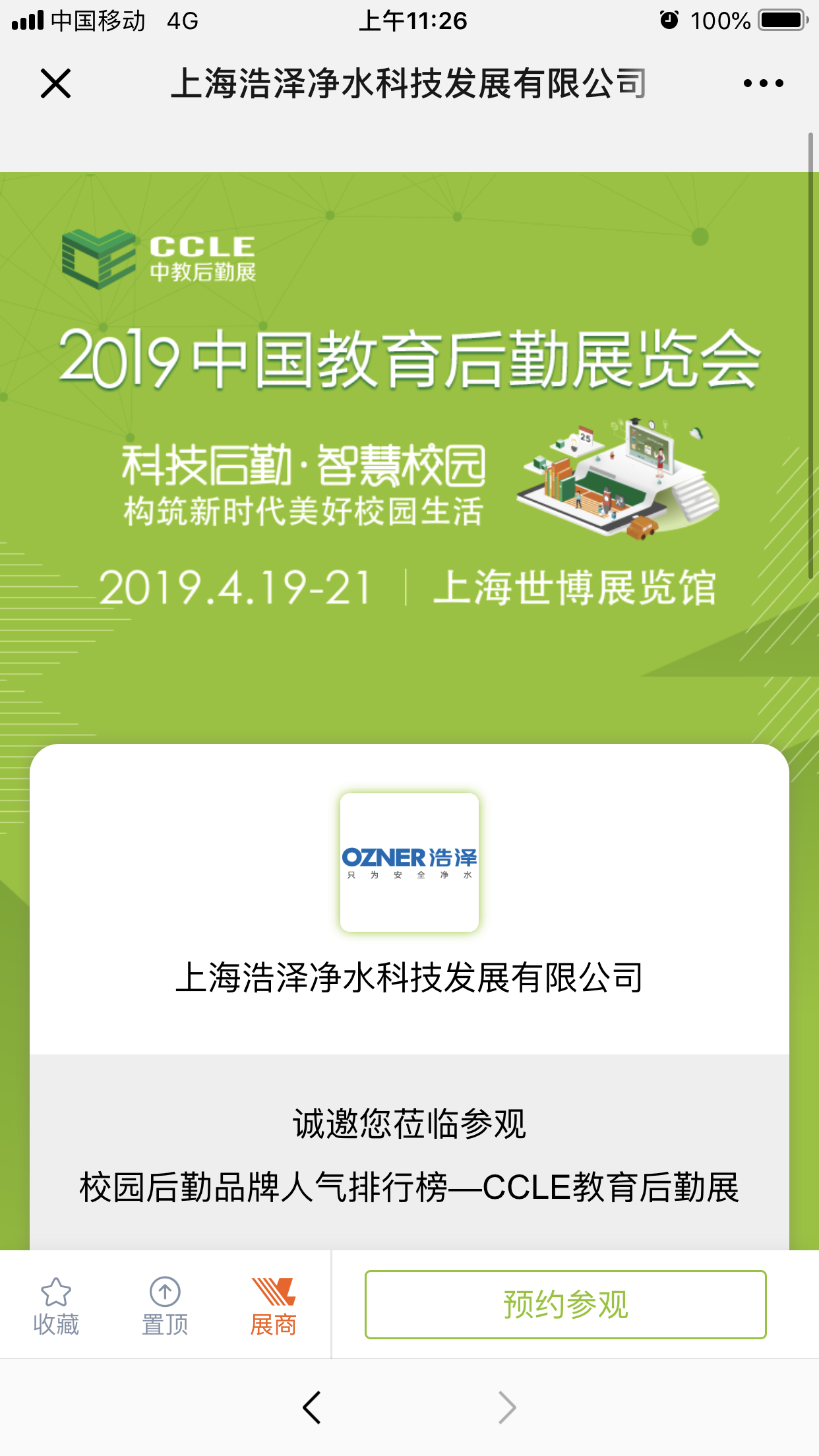 2019年4月19-21日,作為特邀展商,浩澤將亮相“中國教育后勤展”。教育后勤展致力搭建教育后勤設(shè)備、產(chǎn)品、服務(wù)企業(yè)與各級各類學(xué)校間溝通交流交易的服務(wù)平臺。引領(lǐng)行業(yè)不斷調(diào)整教育后勤服務(wù)結(jié)構(gòu)、增加服務(wù)項目、改變服務(wù)方式、提高服務(wù)質(zhì)量,著力打造“教育后勤品牌戰(zhàn)略”。展會圍繞“科技后勤?智慧校園,構(gòu)筑新時代美好校園生活”的主題。