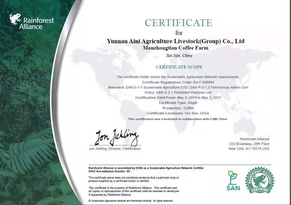 易咖在云南普洱第一期合作了5000畝的專屬雨林咖啡種植基地,打造了tree to cup(從咖啡樹到一杯現(xiàn)萃咖啡)的自主供應(yīng)鏈,以種植于海拔1100米以上的AA級阿拉比卡咖啡豆為原料,咖啡豆均有國際雨林聯(lián)盟認(rèn)證和有機(jī)產(chǎn)品認(rèn)證。