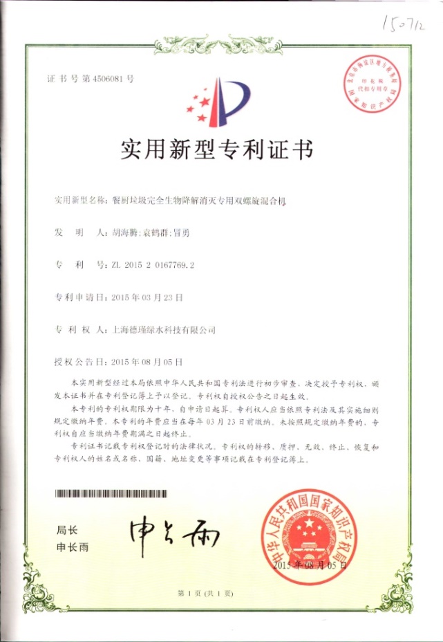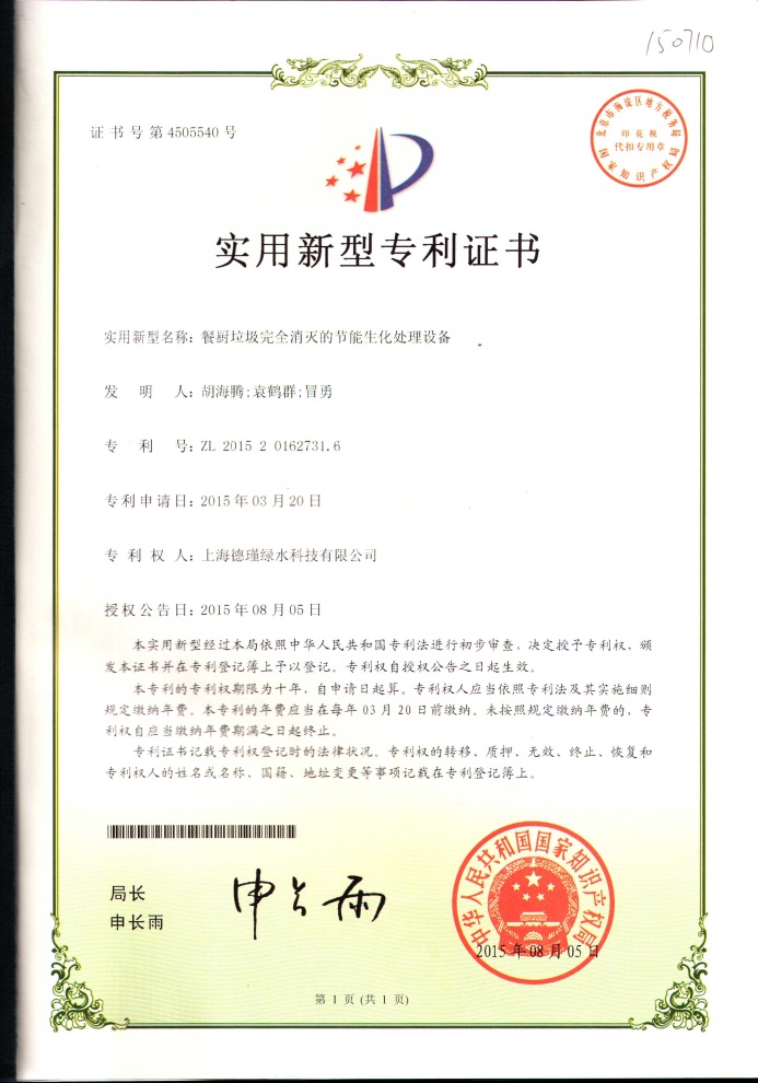 公司嚴格遵循ISO9001質(zhì)量管理體系,生產(chǎn)的“白鷗”消滅型餐廚垃圾生物處理機,經(jīng)上海市質(zhì)量監(jiān)督檢驗技術(shù)研究院檢測,產(chǎn)品性能優(yōu)于《有機垃圾生物處理機》CJ/T227-2018行業(yè)標準,垃圾減重率超過99.3%。憑借多項國家專利技術(shù),目前已通過多家國家級權(quán)威檢測機構(gòu)檢測認證: