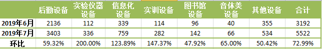 7月教育裝備市場(chǎng)招標(biāo)采購(gòu)信息量分析圖
