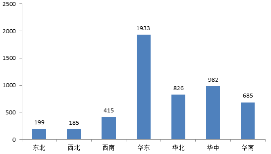 從7月中標(biāo)信息地區(qū)統(tǒng)計(jì)圖和全國(guó)中標(biāo)信息地區(qū)占比圖來(lái)看:華東地區(qū)中標(biāo)信息量為1935條,占比37%;華中地區(qū)中標(biāo)信息量為982條,占比19%;華北地區(qū)中標(biāo)信息量為826條,占比16%;華南地區(qū)中標(biāo)信息量為685條,占比13%;西南地區(qū)招中標(biāo)信息量為415條,占比8%;東北地區(qū)中標(biāo)信息量為199條,占比4%;西北地區(qū)中標(biāo)信息量為185條,占比3%。