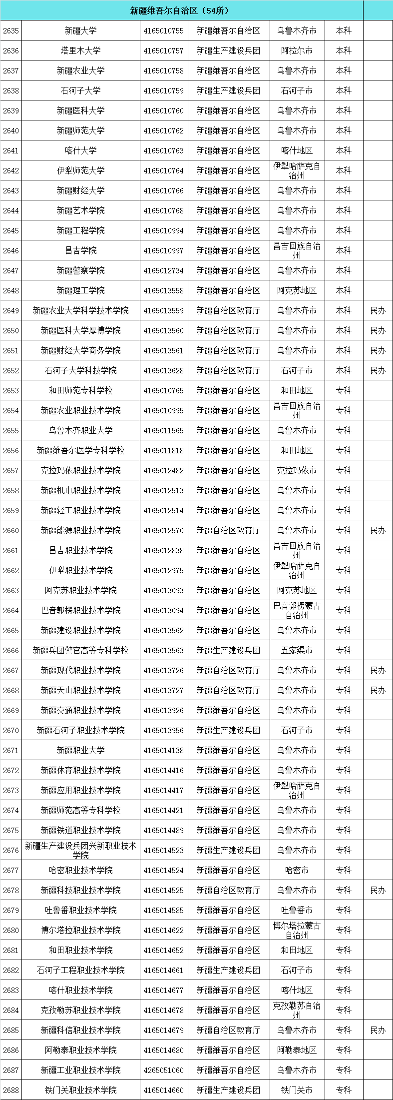 教育部公布了2019年全國(guó)高校名單。截至2019年6月15日,全國(guó)高等學(xué)校共計(jì)2956所,其中:普通高等學(xué)校2688所(含獨(dú)立學(xué)院257所),成人高等學(xué)校268所。