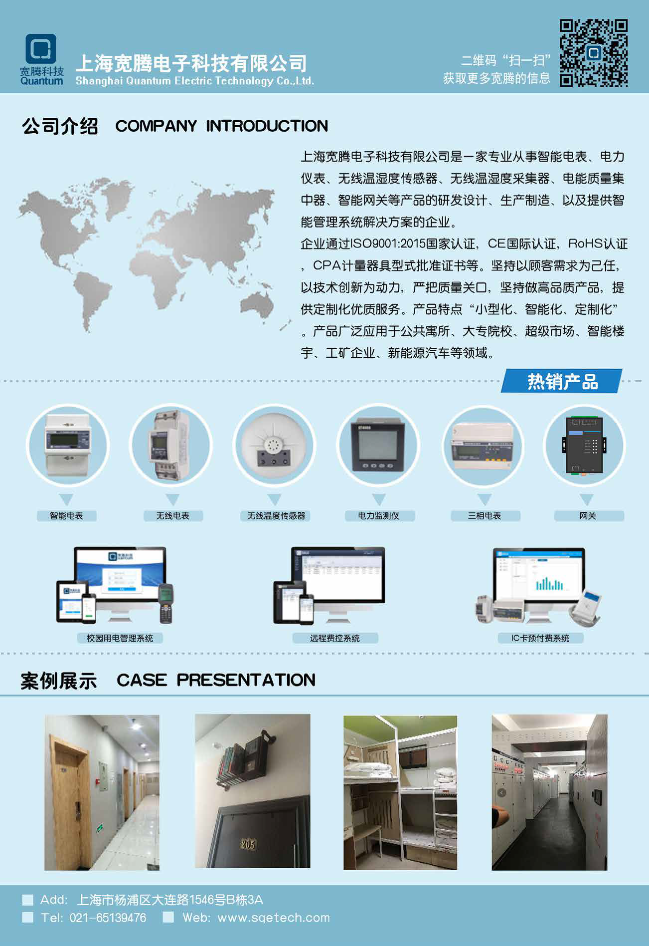 上海寬騰電子科技有限公司是一家專業(yè)從事智能電表、電力儀表、無線溫濕度傳感器、無線溫濕度采集器、電能質(zhì)量集中器、智能網(wǎng)關(guān)等產(chǎn)品的研發(fā)設(shè)計、生產(chǎn)制造、以及提供智能管理系統(tǒng)解決方案的企業(yè)。